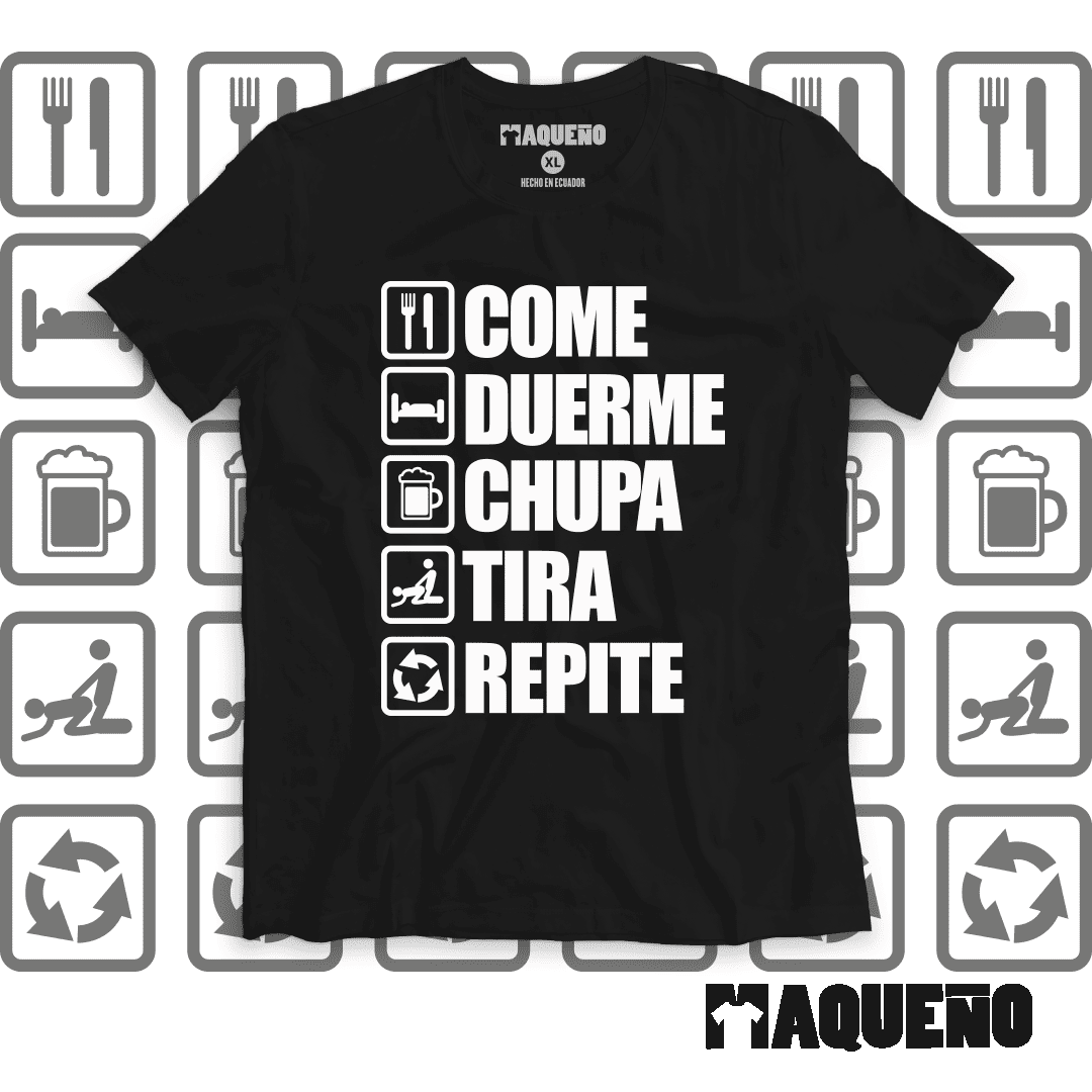 CAMISETA COME, DUERME, CHUPA, TIRA, REPITE